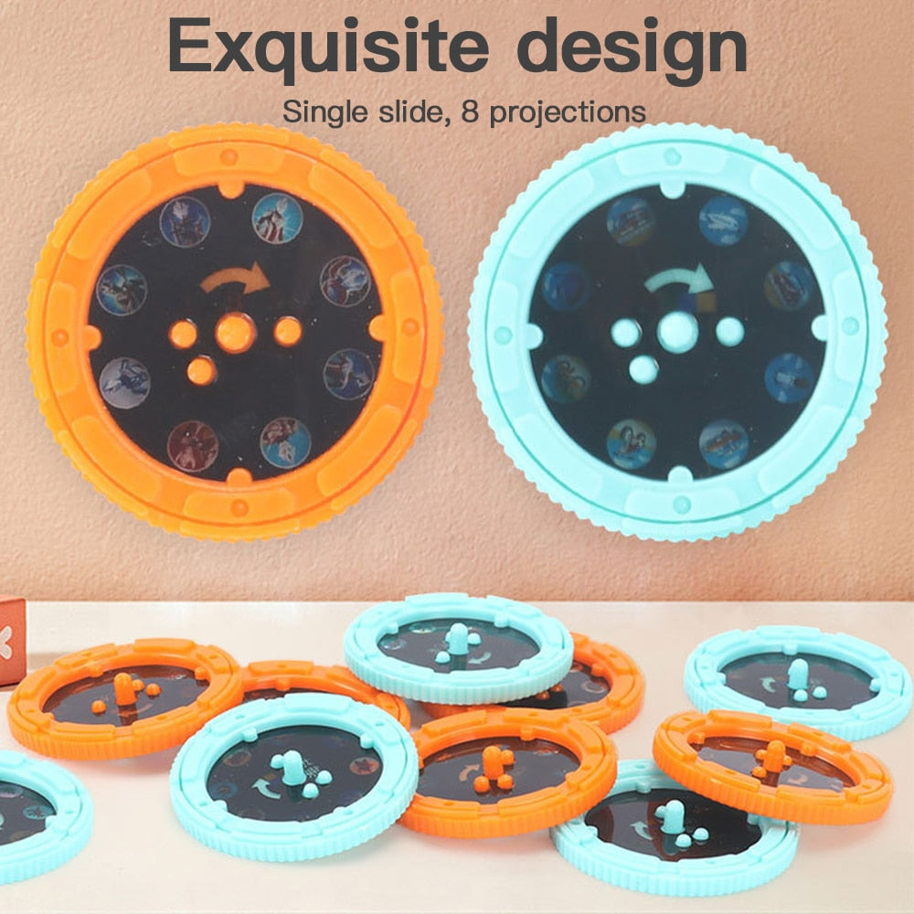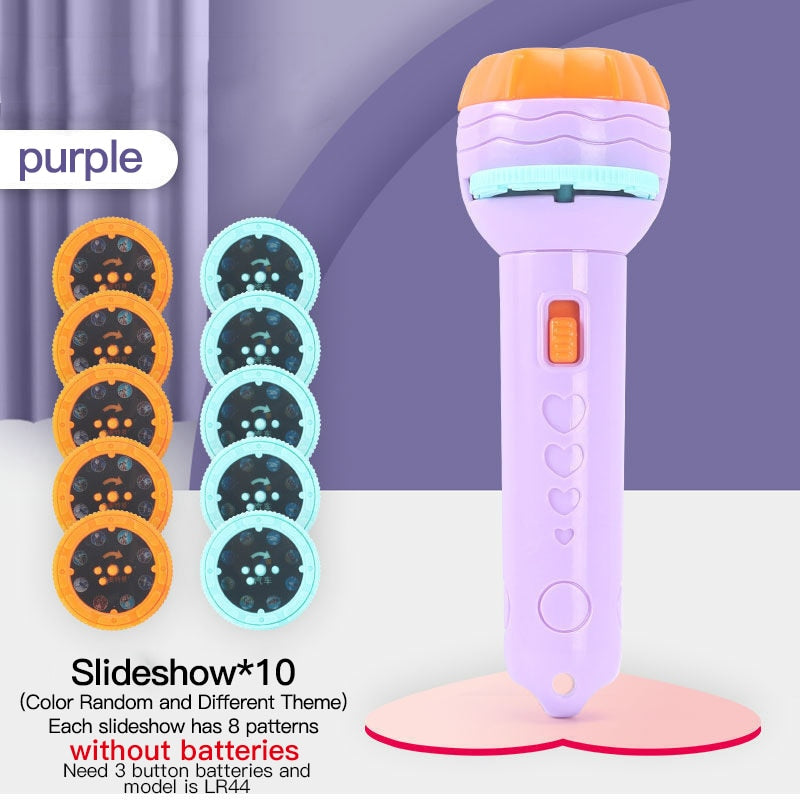 Pode ser usado antes de dormir. E com certeza será um sucesso na festa do pijama do seu filho. Cada um dos discos, quando projetados na parede ou no teto, apresentam cenas de lindas histórias. Design agradável e bonito, projetor de imagem em slides (são cenas das clássicas histórias infantis), permitem que as crianças desfrutem continuamente do brinquedo, estimulando todo o cérebro ao aprendizado e a leitura.